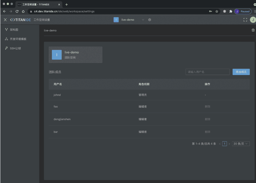 TitanIDE 支持將工作空間賦權(quán),開啟結(jié)對編程;