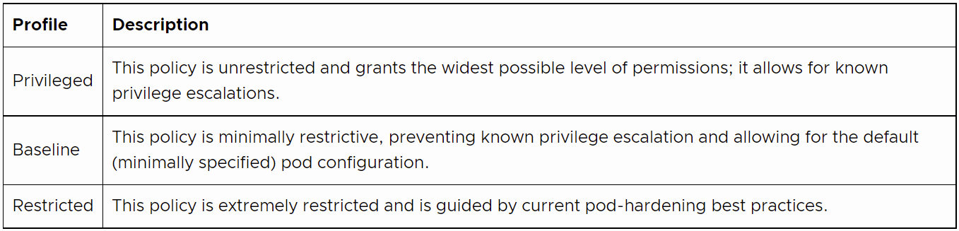 這些級別在 Kubernetes 的 Pod 安全標(biāo)準(zhǔn)中有詳細(xì)描述,但下面是 Kubernetes 自己的文檔的摘要: