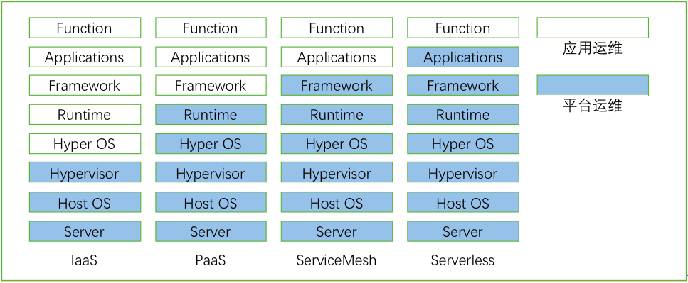 云計(jì)算的一個(gè)發(fā)展方向就是運(yùn)維下沉,將和業(yè)務(wù)無關(guān)的管理功能和運(yùn)維工作盡量下沉到基礎(chǔ)設(shè)施中,應(yīng)用可以聚焦在業(yè)務(wù)能力的開發(fā)和運(yùn)營。這個(gè)趨勢演化的過程,影響了云計(jì)算的發(fā)展方向。從一開始的虛擬化,到IaaS,到PaaS都是將應(yīng)用系統(tǒng)的部分運(yùn)維職責(zé)交給平臺運(yùn)維的過程。