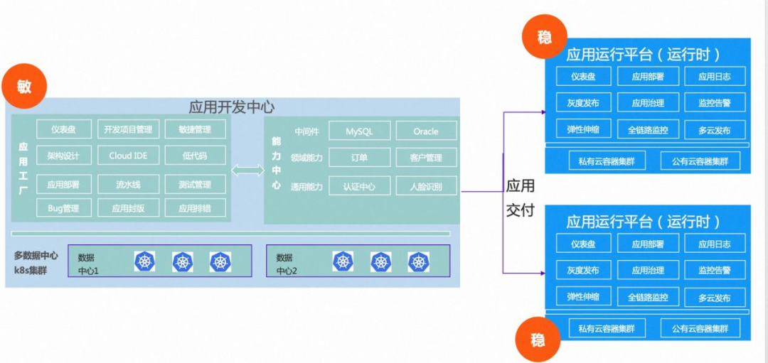 1、應(yīng)用開(kāi)發(fā)中心:以業(yè)務(wù)為中心,讓開(kāi)發(fā)者以組裝式開(kāi)發(fā)的方式進(jìn)行快速開(kāi)發(fā),包含應(yīng)用工廠和能力中心兩大模塊。