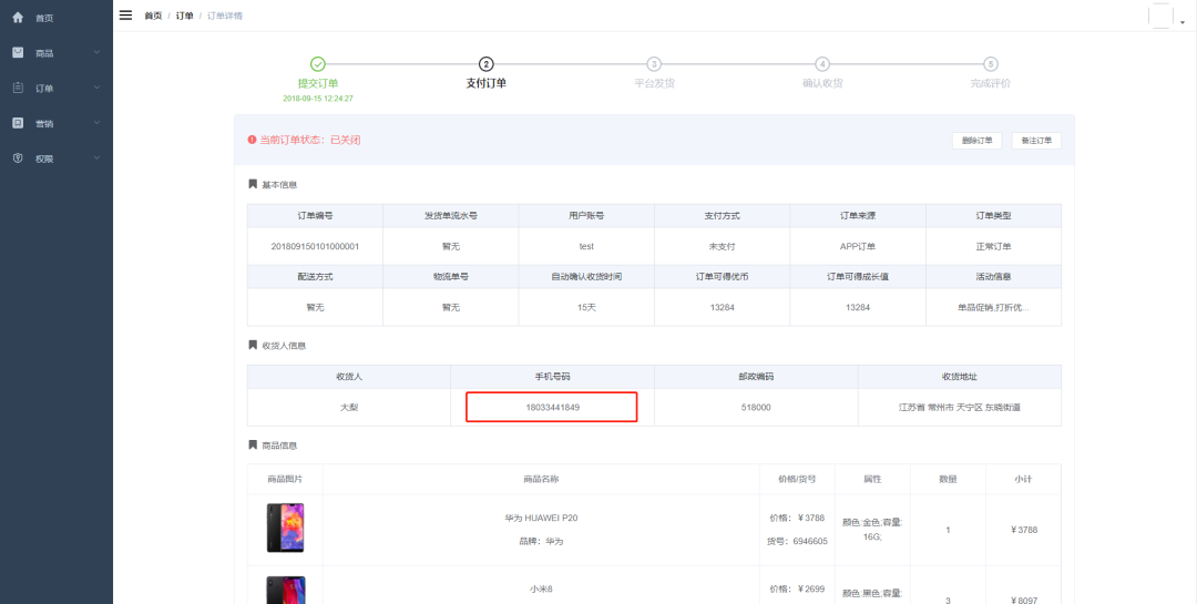 在mall-swarm-istio項目中,訪問首頁->訂單->訂單詳情頁面,可以看到,對外暴露的手機(jī)號碼是以明文形式展示在頁面上的。
