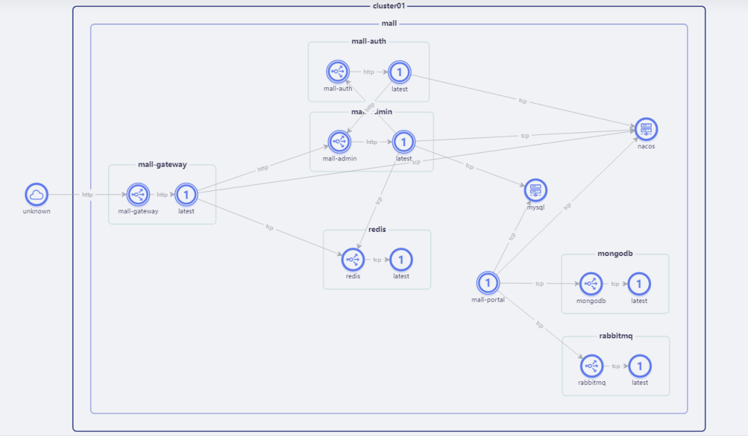 由于mall-swarm依賴眾多,部署麻煩,我們將mall-swarm的所有中間件做了一份k8s部署yaml,讓所有的中間件都部署到集群內(nèi)方便測試,改造后源碼開源在mall-swarm-istio(https://github.com/solarmesh-cn/mall-swarm-istio),所以我們這次使用mall-swarm改造版。