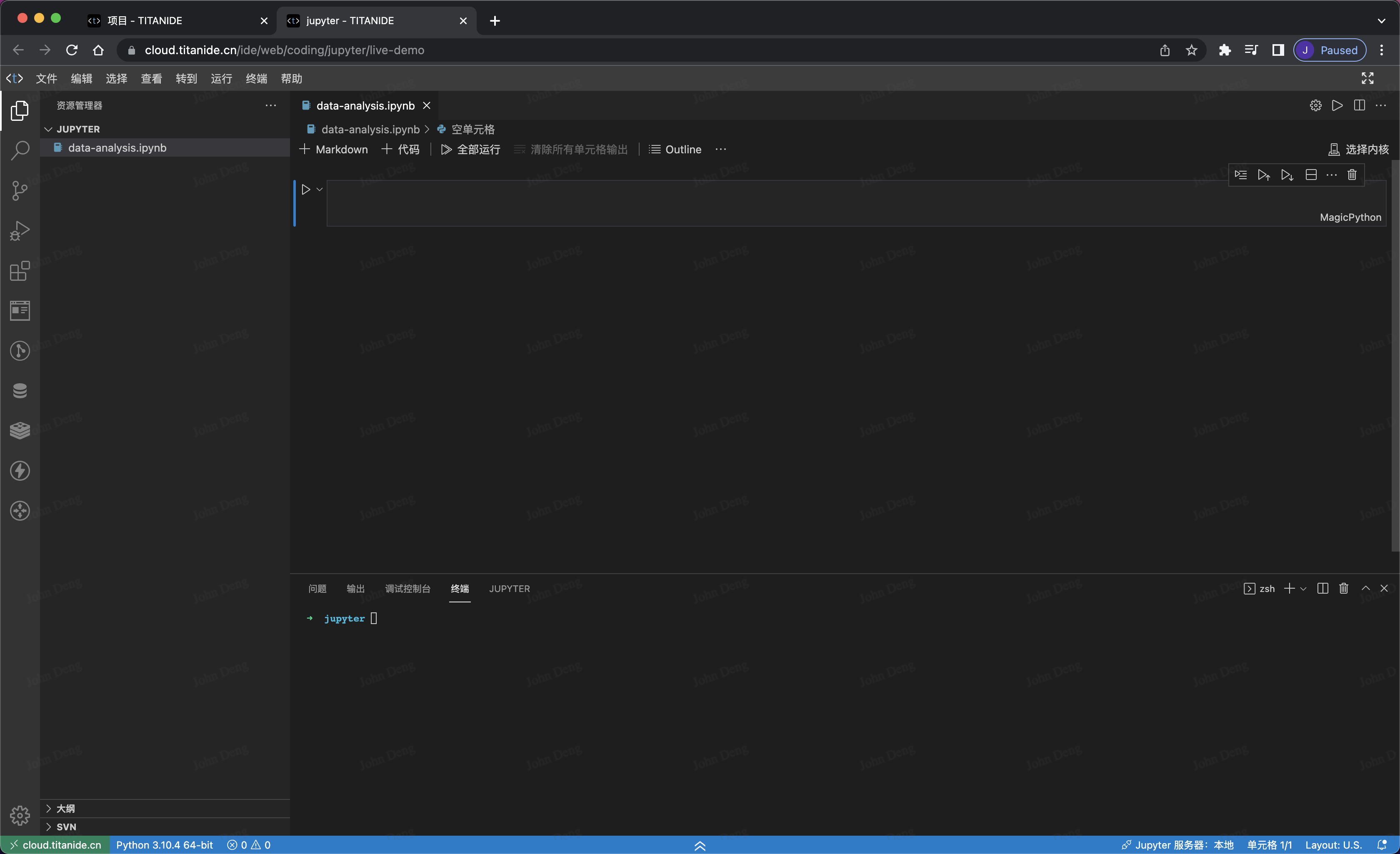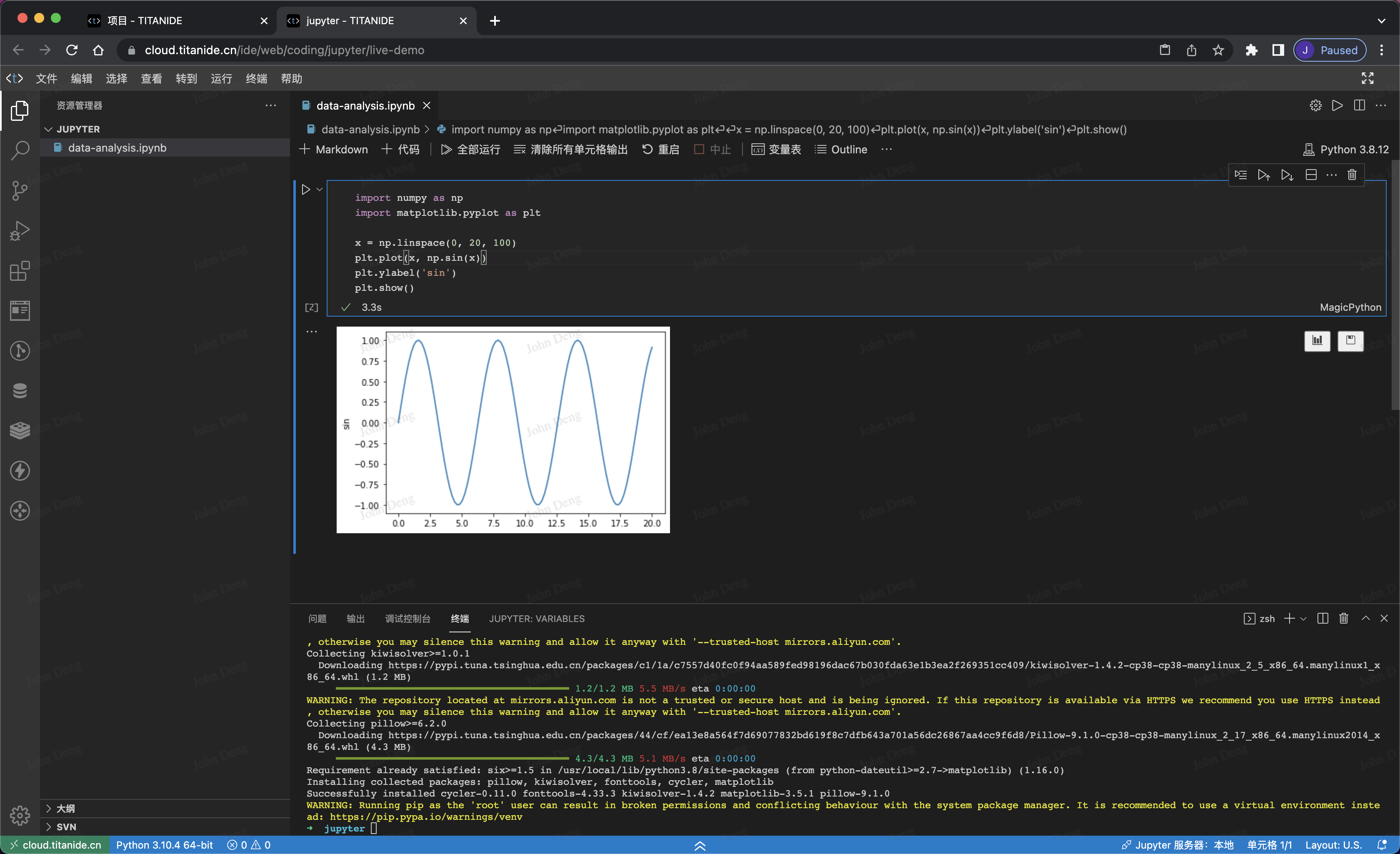 通過(guò)本文提到的方法,您可以在 15 分鐘內(nèi)快速的通過(guò) TITANIDE (在線IDE)提供的開(kāi)箱即用的 Python 模板,創(chuàng)建 Jupyter Notebook 實(shí)現(xiàn)數(shù)據(jù)分析。