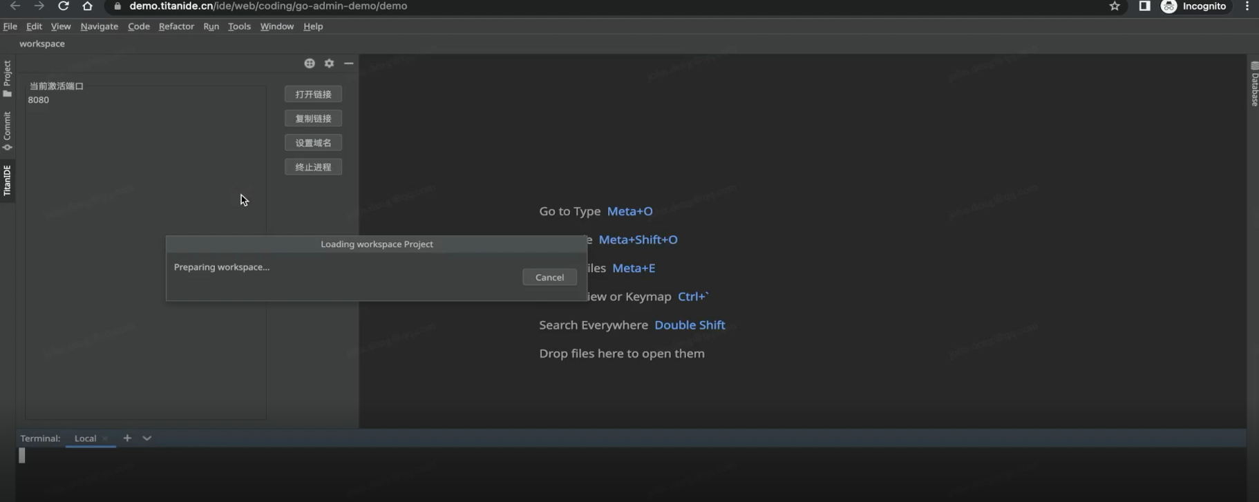 以上是我通過 [TitanIDE] 定制了開箱即用的 Go Admin 開發(fā)環(huán)境模板,然后使用這個(gè)模板一鍵創(chuàng)建 Go Admin 的開發(fā)環(huán)境,在短短的 1 分鐘內(nèi),除了創(chuàng)建項(xiàng)目填寫一個(gè)項(xiàng)目名稱,剩下的就是靜靜地等待 1 分鐘,您無需做其他任何操作,一個(gè)完整的 Go Admin 開發(fā)環(huán)境就呈現(xiàn)在您的眼前了。欲知 [TitanIDE] 的模板是如何開箱即用的,或者您也想定制屬于您的開發(fā)環(huán)境模板,敬請期待下次的分享。