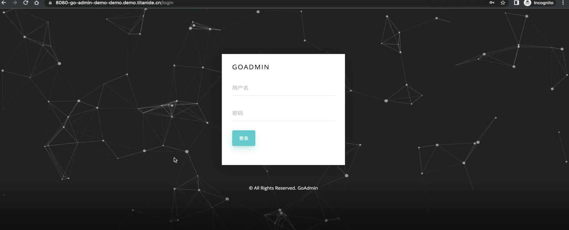 等待 1 分鐘之后,一個(gè)完整的 Go Admin 開發(fā)環(huán)境已經(jīng)準(zhǔn)備就緒。