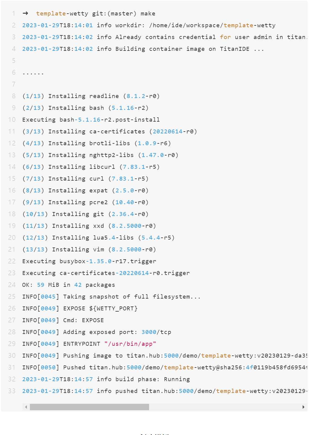TitanIDE 內(nèi)置了鏡像構(gòu)建工具,具體的命令行在 Makefile 里面,執(zhí)行 make help查看幫助。