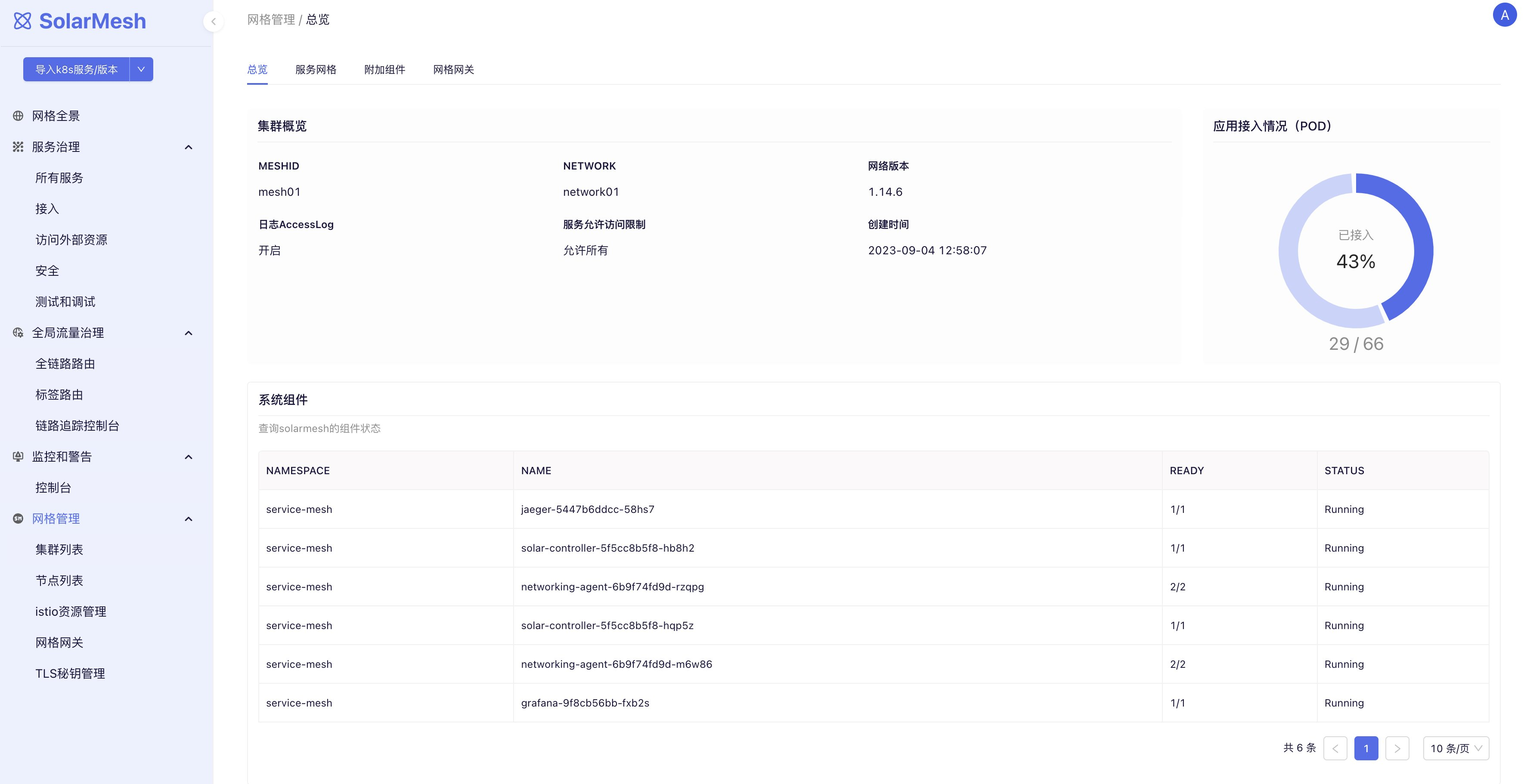 SolarMesh的功能被重新調整,取消了直接展示和操作Istio對象,而是從SRE日常運維的角度重新規(guī)劃。同時新版本中也取消了對Namespace,Pod和Deployment等非網格對象的管理。新舊版本的對比如下。