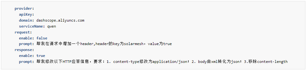 AI-Transformer 是 SolarMesh AI 插件中的一大亮點。通過配置 AI 請求/響應(yīng)轉(zhuǎn)換插件,用戶無需編寫復(fù)雜代碼,即可使用自然語言來調(diào)整服務(wù)的請求和響應(yīng)數(shù)據(jù)。這一功能在測試場景中尤為實用,測試人員可以基于原始請求/響應(yīng),自動生成用于邊界條件測試的新請求/響應(yīng),大大提高了測試的全面性和效率。例如,通過簡單的自然語言指令,即可實現(xiàn) HTTP 應(yīng)答信息的自動化修改,如修改內(nèi)容類型、轉(zhuǎn)換數(shù)據(jù)格式、移除特定頭等。
