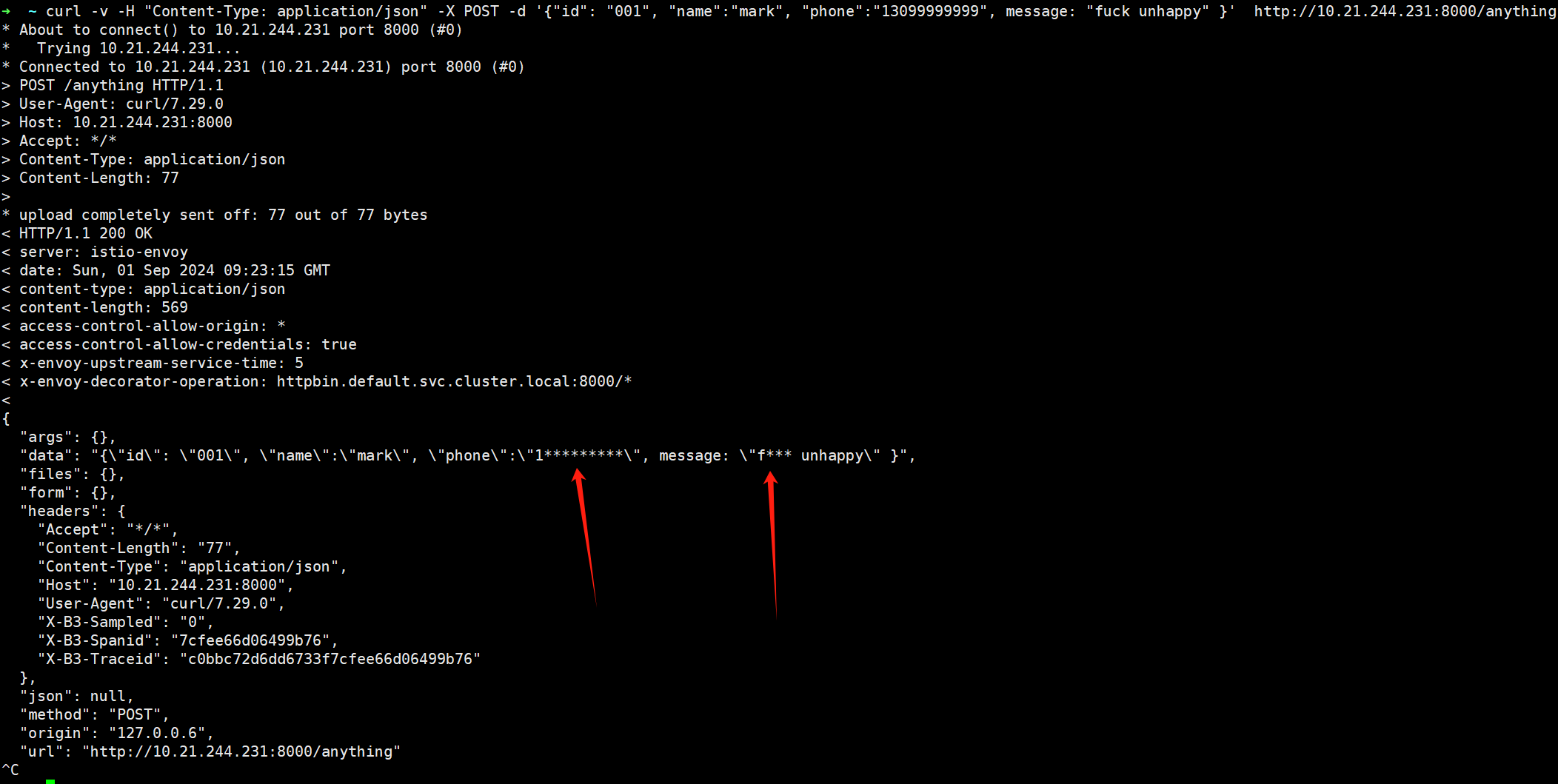 除了基本的請求/響應(yīng)轉(zhuǎn)換外,AI-Transformer 插件還能在業(yè)務(wù)數(shù)據(jù)脫敏方面大顯身手。通過配置相應(yīng)的規(guī)則,插件可以自動對返回數(shù)據(jù)中的敏感信息進行加密處理,如手機號、銀行卡號等隱私數(shù)據(jù),以及英文違禁詞等,有效保護用戶隱私和數(shù)據(jù)安全。這一功能在數(shù)據(jù)共享、合規(guī)性要求較高的場景中尤為重要。