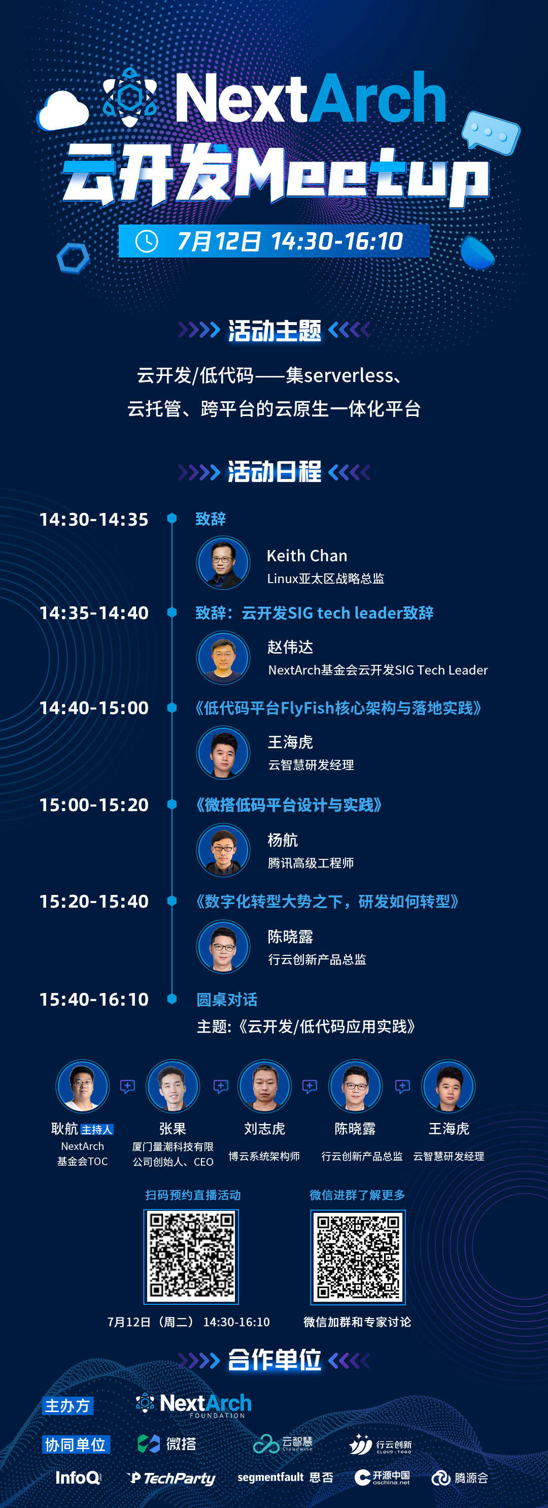 7月12日14:30-16:10,《NextArch基金會云開發(fā)meetup》 即將開啟,活動邀請到: